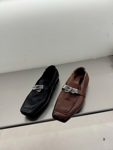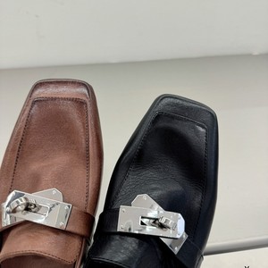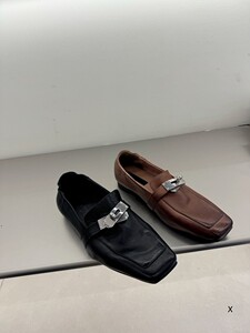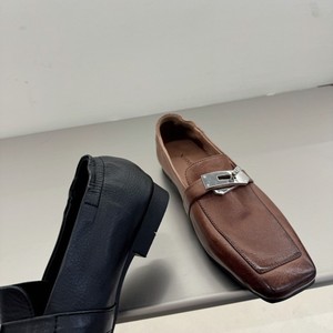 欧洲站XJ女鞋25秋金属扣擦色软头层牛皮方头松紧口平底乐福鞋单鞋