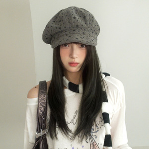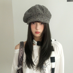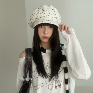 复古文艺风星星贝雷帽子女大头围百搭云朵画家帽显脸小八角报童帽