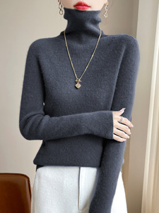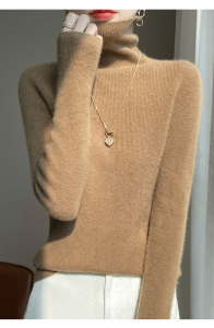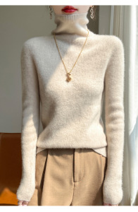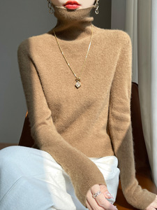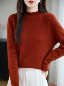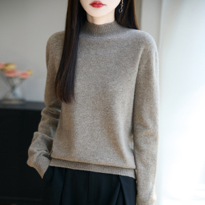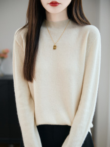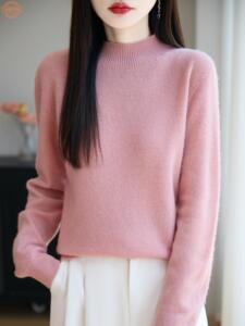 无缝半高领针织衫女套头毛衣秋冬新款宽松内搭保暖打底衫毛衫上衣