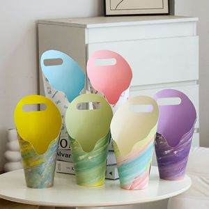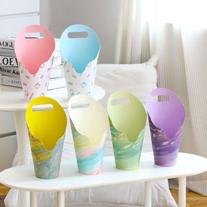 冰淇淋手提花盒圆形卡通简约花束插花桶花店资材生日甜筒伴手礼盒