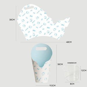圆形手提盒套件【KT蓝白】;9.5*30cm 5张包装纸+5个杯子/套