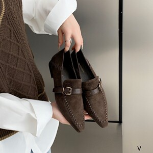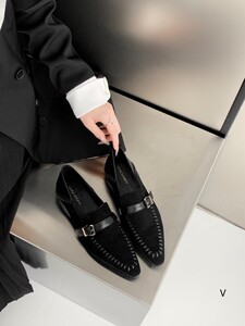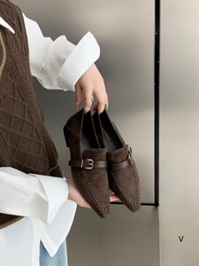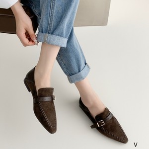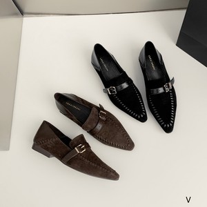 欧洲站女鞋25秋时尚一脚蹬软羊猄皮拼胎牛皮尖头踩跟平底乐福鞋单