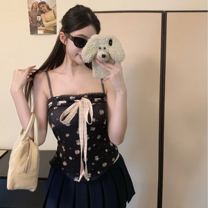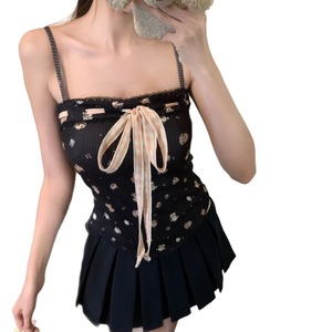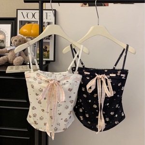66029#夏季新款蕾丝花边背心甜美少女蝴蝶结短款美背吊带上衣女