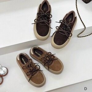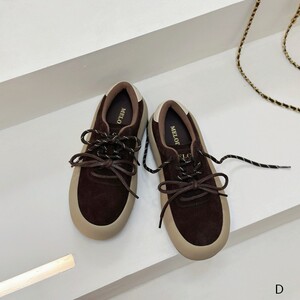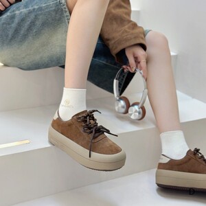 欧洲站女鞋25秋经典款软牛反绒皮圆头系带休闲平底板鞋慢跑鞋单鞋
