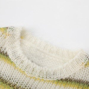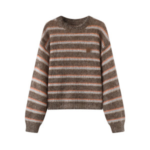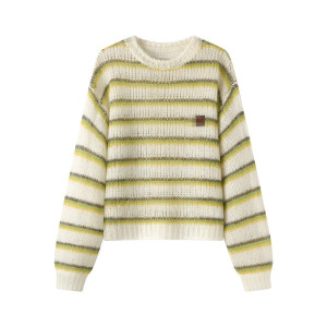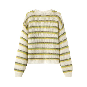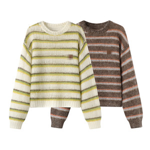 现货2025秋新款宽松甜美条纹镂空长袖针织衫上衣3J3E409