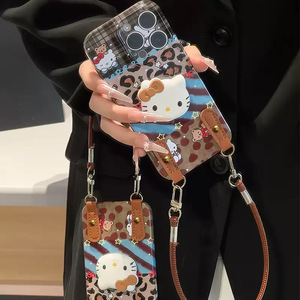 豹纹拼接凯蒂猫+支架+皮扣挂绳【菲林软壳】