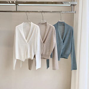 v领秋冬2025新款经典开衫系扣上衣纯色叠穿毛衣羊毛针织外套百搭