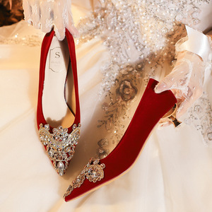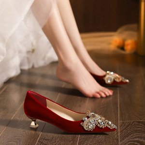 X338-52 婚纱新娘鞋不累脚时尚法式婚鞋女2025年新款红色秀禾34-4