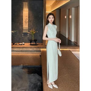 【青绣】新中式气质优雅绣花改良旗袍夏季新款女绝美修身连衣裙