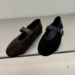 欧洲站XJ女鞋25秋冬一字带软羊猄皮拼胎牛皮圆头平底玛丽珍鞋单鞋