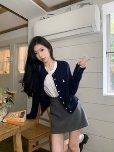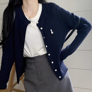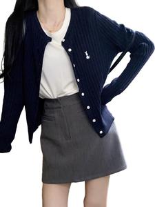 早秋韩系刺绣针织开衫女薄款外搭秋季长袖毛衣外套修身短款设计感