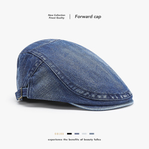 春秋出行牛仔布画家帽街头风报童前进帽百搭显脸小文艺复古贝雷帽