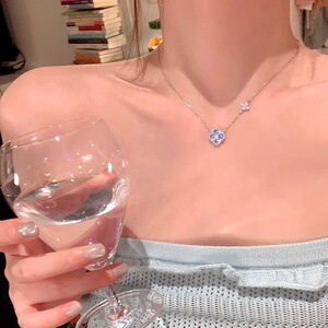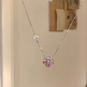 爆闪满钻四叶花项链轻奢小众精致高级感粉色锆石锁骨链小香风颈链