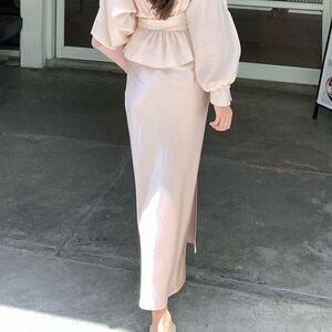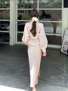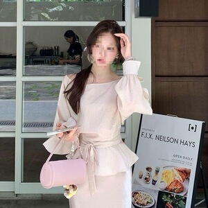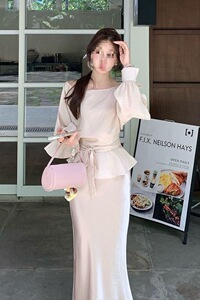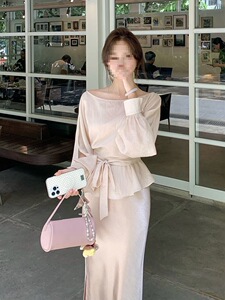 J5Y法式高级气质套装裙女2025早秋新款长袖系带上衣缎面半身裙两