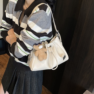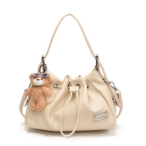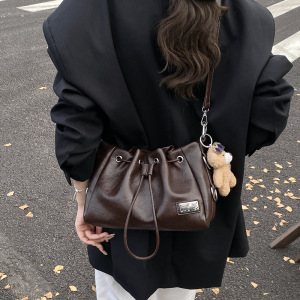跨境复古手提腋下包女2025秋冬新款高级感水桶包百搭单肩包斜挎包