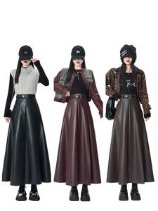 pu皮百褶伞裙咖色皮裙半身裙女秋冬2025新款长款高腰显瘦垂感a字
