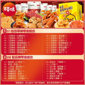 21包+29包品牌零食+送哇哈哈【开心鸭/哆啦礼盒随机 共50包】