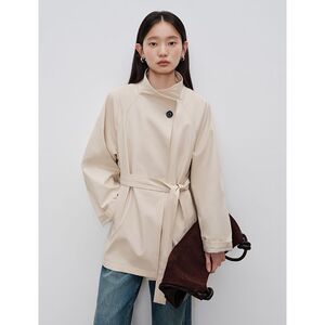 小个子韩版立领风衣外套女秋装新款插肩袖百搭上衣长短款