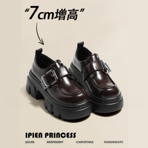 网红松糕厚底增高乐福鞋女年冬季新款休闲百搭舒适圆头小皮鞋