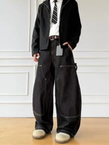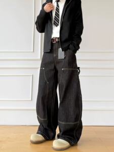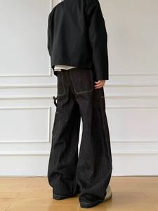 复古原牛水洗设计感弯刀牛仔裤男女宽松休闲阔腿伐木工装长裤潮牌