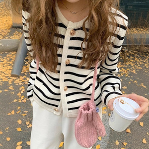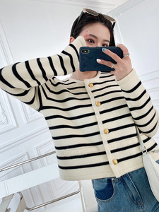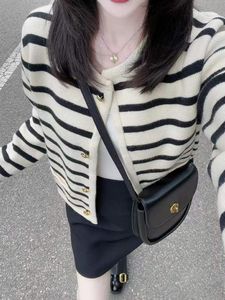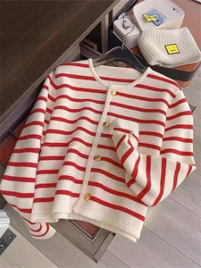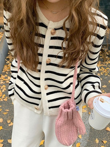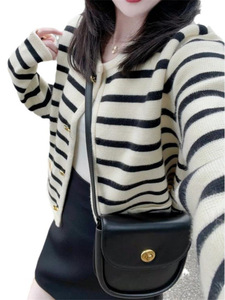 小香风条纹针织开衫女毛衣外套2025韩版新品针织开衫女秋外穿圆领