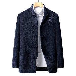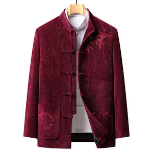 男士刺绣长袖唐装2025秋冬新款男装老年休闲国风宴会舒适毛呢外套