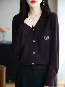 2025秋季新款女装长袖针织衫打底翻领衬衫高级感V领薄款外套女装