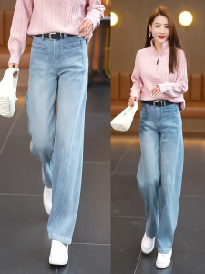 阔腿牛仔裤2025年新款秋季裤子女时尚百搭显瘦高腰长裤窄版直筒裤