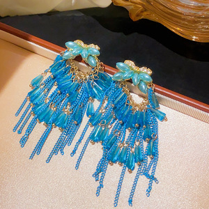 银针超闪镶钻蝴蝶流苏珍珠耳环轻奢高级感耳钉女时尚气质耳饰批发