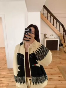 韩国东大门2025秋季新款fure复古洋气百搭显瘦提花针织衫拉链毛衣