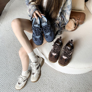 欧洲站厚底德训鞋女2025秋季新款百搭时尚休闲运动拼色系带阿甘鞋