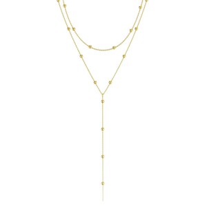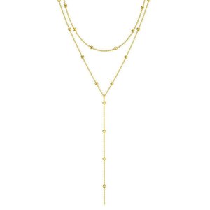 跨境热销304镀真金简约双层气质极简风女士锁骨链夹珠夹球Y字项链
