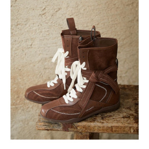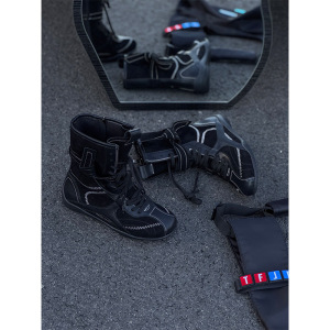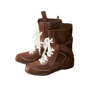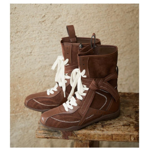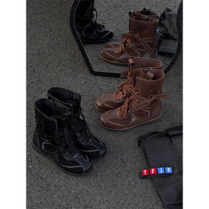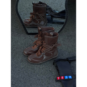 美拉德复古中筒猎装德训马丁靴子女2025秋季新款时髦拼色拳击靴女