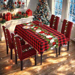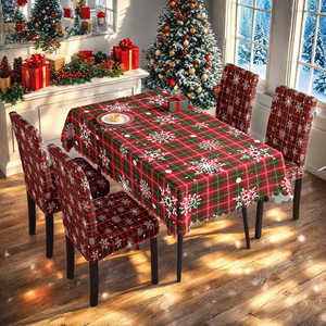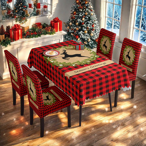 TEMU爆款工厂批发代发跨境专供数码印桌布格纹圣诞桌布椅套套装