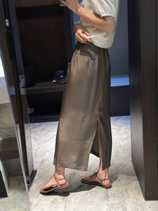 高级感老钱风缎面垂感直筒开衩半身裙 061a401
