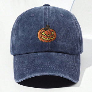 跨境万圣节南瓜棒球帽弯檐水洗棉刺绣南瓜帽防晒鸭舌帽遮阳帽搞怪