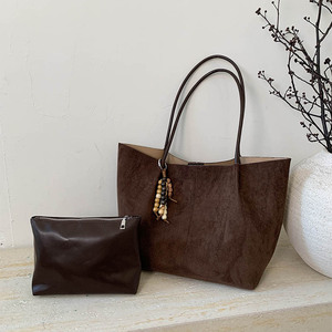 跨境简约麂皮绒托特包女2025秋冬新款绒面子母包大容量手提单肩包