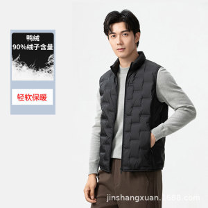 男士羽绒马甲冬季中青年波某登同款韩版男士保暖灰鸭绒坎肩外套