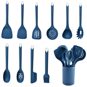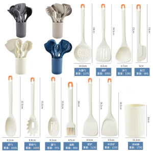 硅胶厨具11件套耐高温锅铲煎铲汤勺漏勺粉抓刮刀油刷厨具7件套装