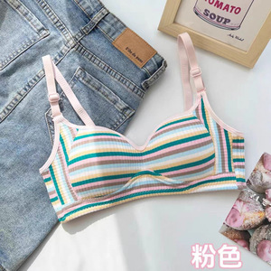 彩虹小马复古风彩虹条纹少女文胸欧美辣妹小胸聚拢薄款无痕内衣女