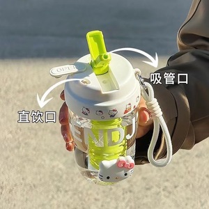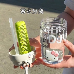 高颜值水杯2025新款女生泡茶杯双饮带吸管杯子学生可爱提手随行杯
