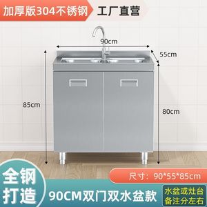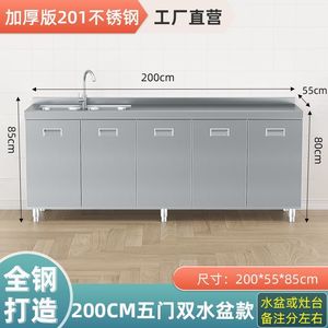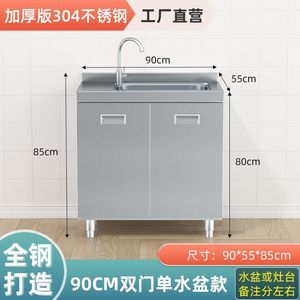 304不锈钢橱柜家用厨房灶台柜碗柜洗菜一体简易不锈钢橱柜餐边柜