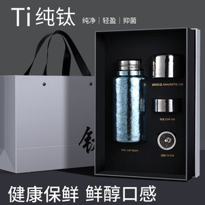 纯钛保温杯磁吸钛杯男女士高颜值结晶茶水分离户外便携旅行泡茶杯