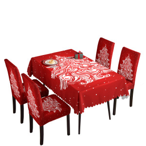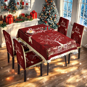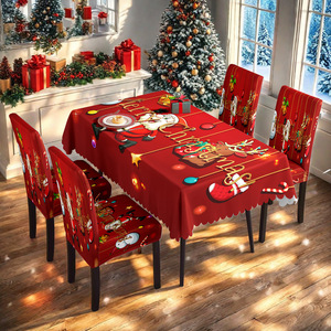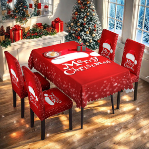 工厂批发跨境新款圣诞防水桌布椅套套装全包牛奶丝圣诞椅套