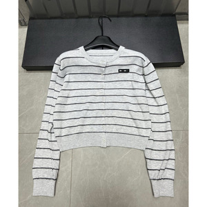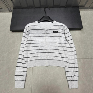 25年秋季新款nn家字母黑标条纹针织长袖单排扣开衫宽松百搭女上衣