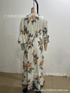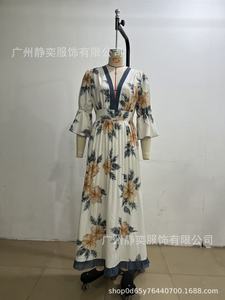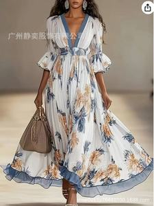 2025爆款亚马逊独立站跨境印花连衣裙长裙