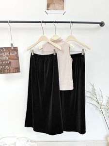 黑色金丝绒后开叉松紧高腰半身裙女2025秋新款中长款直筒裙子