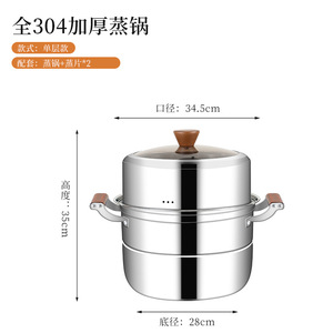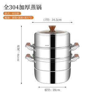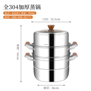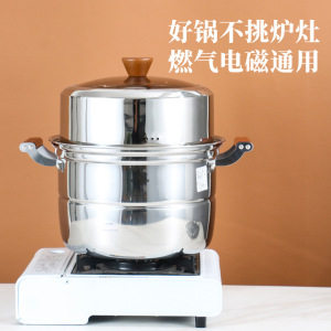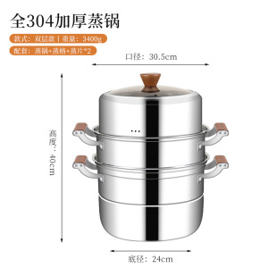 304蒸锅不锈钢三层钢商用特厚大容量多层汤蒸锅家用蒸笼上蒸下煮