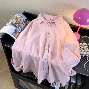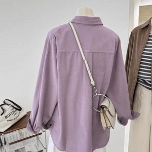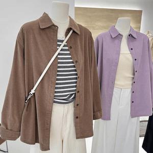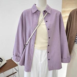 2025新款韩系紫色灯芯绒衬衫女宽松长袖百搭遮肉休闲外套春秋上衣