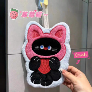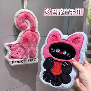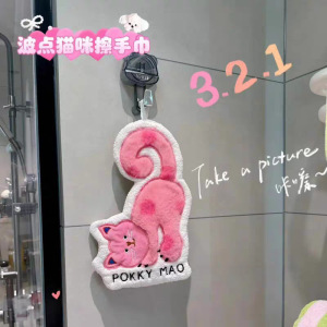 小红书网红同款波点猫擦手巾卡通猫咪擦手巾可悬挂厨房卫生间挂巾